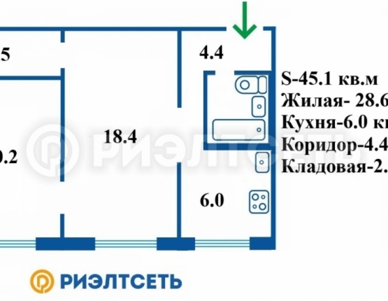 Общая площадь:45.1 м2