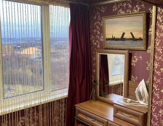 С обысным косметическим ремонтом с двумя лоджиями. Перепланировка (убрана оконная рама на лоджии и убрана межкомнатная стенка разделяющая одну из комнат с коридором)