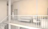 На первом этаже расположена кухня-гостиная 61 м² с выходом на террасу 22,4 м², санузел, прихожая и хозяйственные помещения. Второй этаж включает три изолированные комнаты 24,5 м², 15,6 м² и 14 м², санузел 5,2 м², холл и зону света.