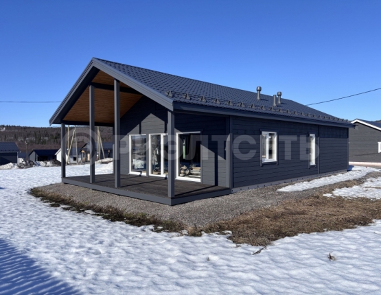 Продается новый, одноэтажный дом в скандинавском стиле с собственным участком в охраняемом поселке Норвежская деревня.