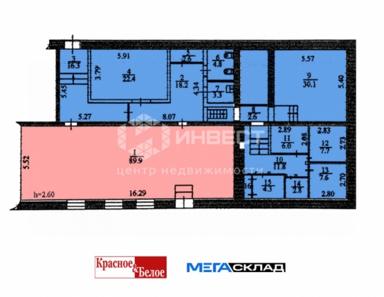 Занимаемая площадь: 89,9 кв.м.